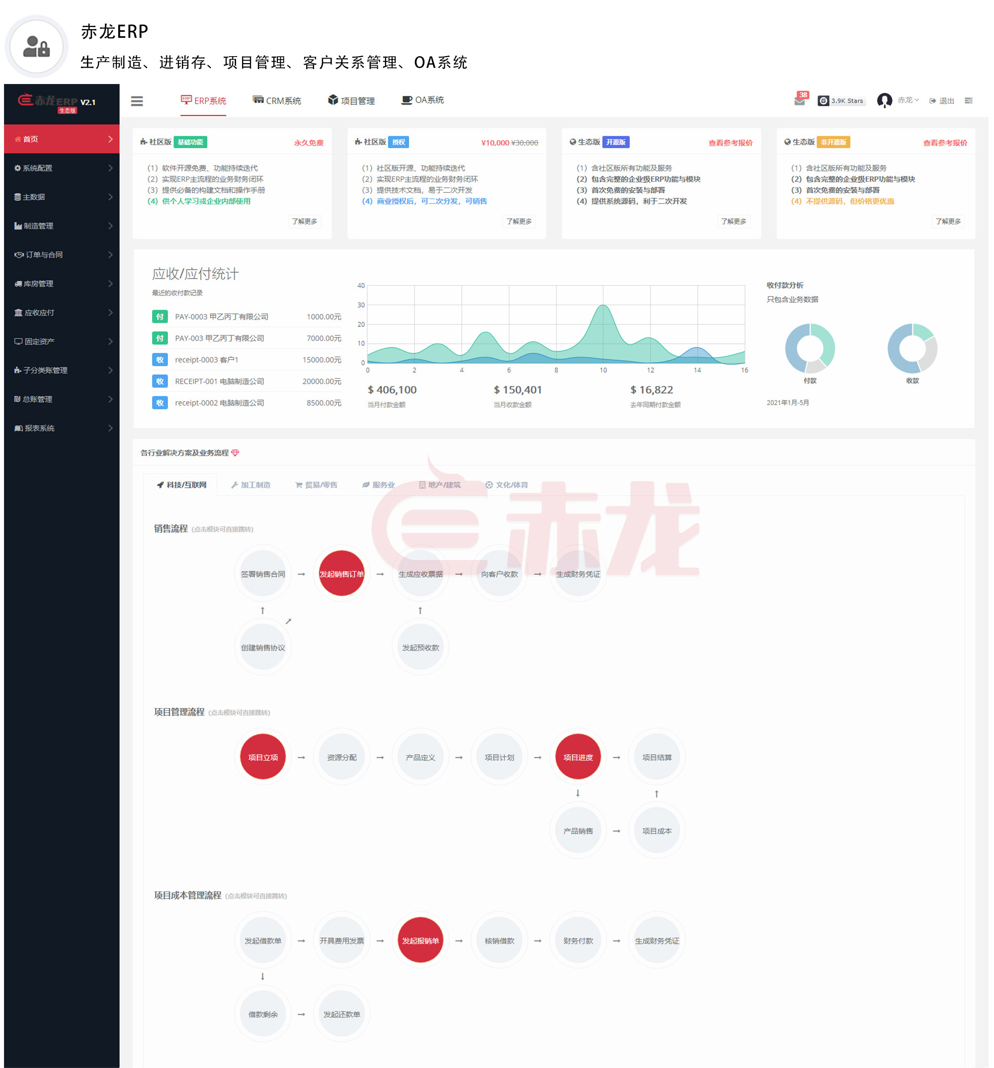 赤龙ERP 深耕ERP领域13年,致力于成为开源ERP中的“领跑者”,为中小企业提供功能丰富、流程完整、使用便捷、成本低廉的专业ERP服务,产品覆盖互联网、科技、服务、地产、制造等多个行业,提供全面信息化解决方案。