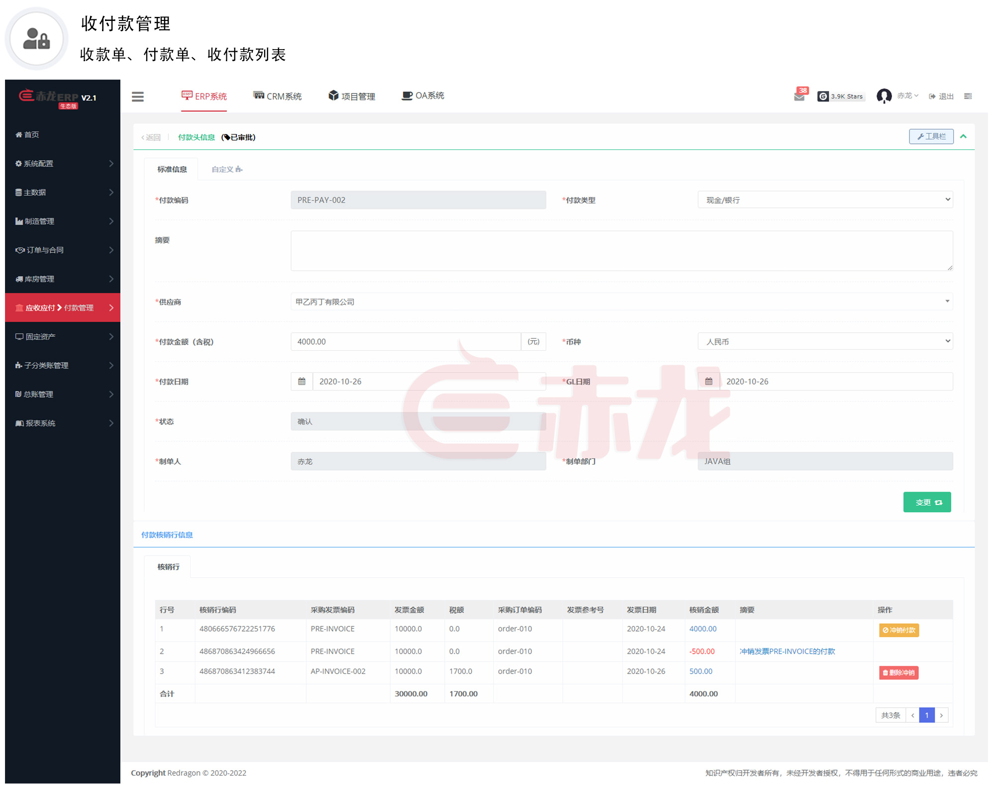 发票、红字发票、预付款、预收款、付款单、收款单、费用报销